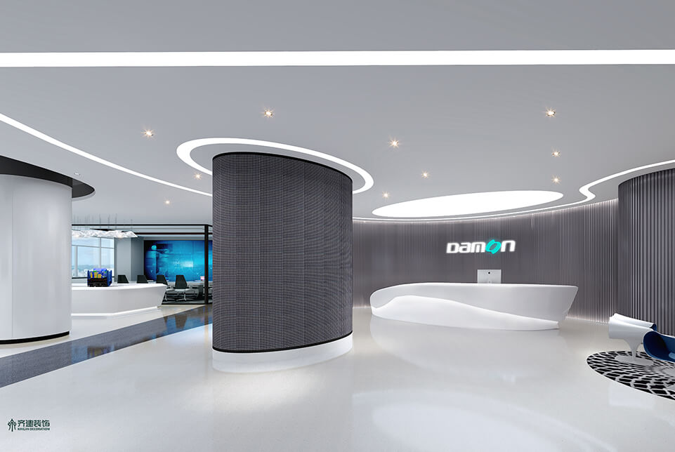 設(shè)計(jì)概念立足于物流科技創(chuàng)新理念,與企業(yè)圍繞技術(shù)創(chuàng)新核心競爭力相聚合,依托流動型曲線的張力,使得整個(gè)辦公空間更具立體感和動態(tài)美感,以匯聚、循環(huán)、開放逐層遞進(jìn)的狀態(tài)展開空間敘事主線。