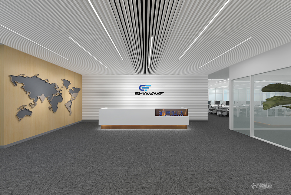 在本項目設計中,齊建裝飾設計師,巧妙的運用視線的延展,基于原建筑脈絡與結構之上,入口門廳將空間橫向打通,成為空間開篇序曲。以木質肌理,與溫潤牙白石材,光線由不同角度射入,在公司前臺面,映照出深深淺淺的抽象筆觸,又彰顯空間縱深之感,豁然開朗中蘊藏周密的公司文化儀式感。
